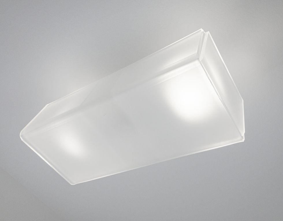 Composed by two separate elements: folded semi-transparent acrylic sheets, forming a closed box.